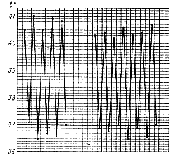 В этих стадиях отмечается учащенный, напряженный пульс (склеротические изменения сосудов); границы сердца расширены влево (гипертрофия левого желудочка); при исследовании глазного дна выявляются склеротические изменения сосудов (артерии сужены и извиты, а вены рефлекторно расширены). На рентгенограмме отмечается расширение сердца влево и расширение аорты. При электрокардиографическом исследовании обнаруживают признаки атеросклеротического кардиосклероза: левограмма (рис. 30). Рис. 30. Температурная кривая при гектической лихорадке. |