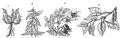 1. Одуванчик лекарственный; 2. Крапива двудомная; 3. Шиповник. 4. Береза