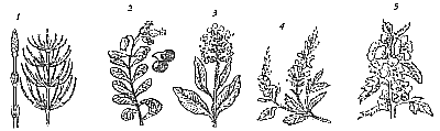 1. Хвощ полевой. 2. Толокнянка. 3. Шалфей. 4. Вероника лекарственная. 5. Алтей