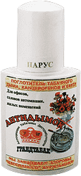 Средство дезодорирующее "Антидымок Парус" это поглотитель табачного дыма, канцерагенов и смол. В основе действия – способность некоторых минералов сорбировать многие газы и запахи. Слой гранул на дне пепельницы активно поглощает табачный дым, содержащий канцерогенные вещества. Огонек загашаемой сигареты вызывает испарение ароматических веществ, на гранулах с запахом яблока, фиалки или лимона. |