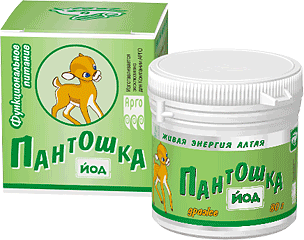 Драже "Пантошка-Йод" оказывает общеукрепляющее действие и повышает эффективность усвоения йода из пищи, является дополнительным источником йода. Пантогематоген усиливает секрецию гормона тиреотропина, обладает выраженным стабилизирующим влиянием на вегетативную нервную систему, что делает процесс поглощения йода и секрецию тиреотропина более равномерным. Биологически активные вещества экстрактов лекарственных растений оказывают положительное влияние на процессы микроциркуляции, проницаемость и тонус сосудистой стенки, а также капилляров щитовидной железы, обеспечивают эффективную защиту от избыточного влияния процессов перекисного окисления липидов в условиях стресса и адаптационных нагрузок. Территория России расположена в зоне эндемического дефицита йода. При недостатке йода в пище наблюдается упадок сил, снижение работоспособности и интеллекта, невозможно нормальное формирование психики и половой функции, нарушается внимание и понимание сути явлений, поэтому драже «ПантошкаЙод» рассчитано на непрерывный прием. |